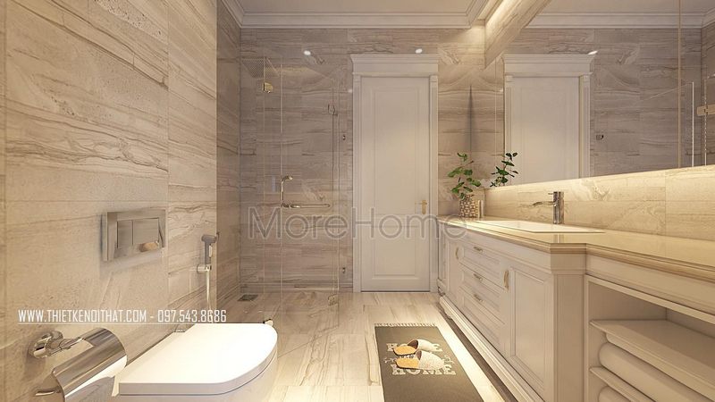 Khi nhìn thấy mẫu cửa gỗ tự nhiên màu trắng sang trọng được sử dụng trong phòng tắm của nhà biệt thự cao cấp, người ta sẽ cảm thấy rất ấn tượng.