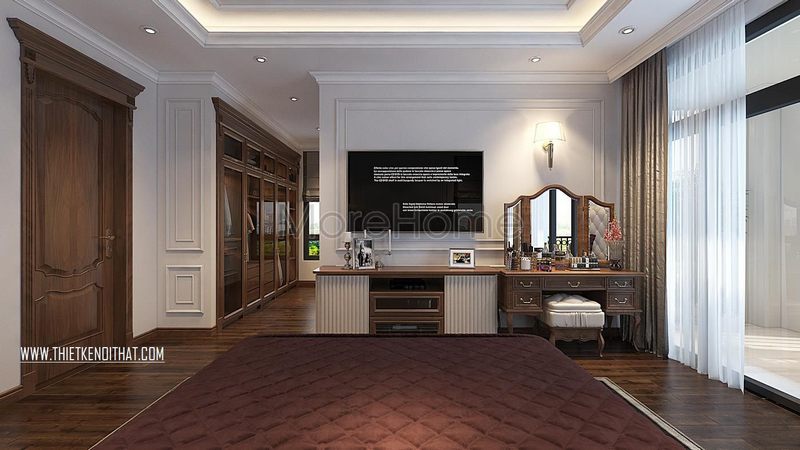 . Mẫu cửa gỗ tự nhiên nhập khẩu có màu nâu tinh tế, mang lại vẻ trầm ấm và sang trọng cho không gian phòng ngủ.
