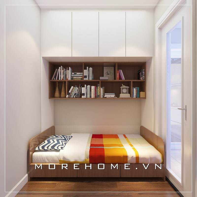 Giường ngủ một người được thiết kế theo phong cách hiện đại và đơn giản, có ngăn kéo phía dưới với nhiều tiện nghi và ngăn nắp để lưu trữ.